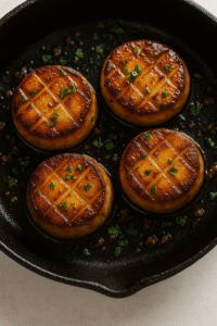 - Heat olive oil in a skillet over medium heat. Sear the mushroom rounds flat-side down for 3–4 minutes until golden brown. Flip and repeat.